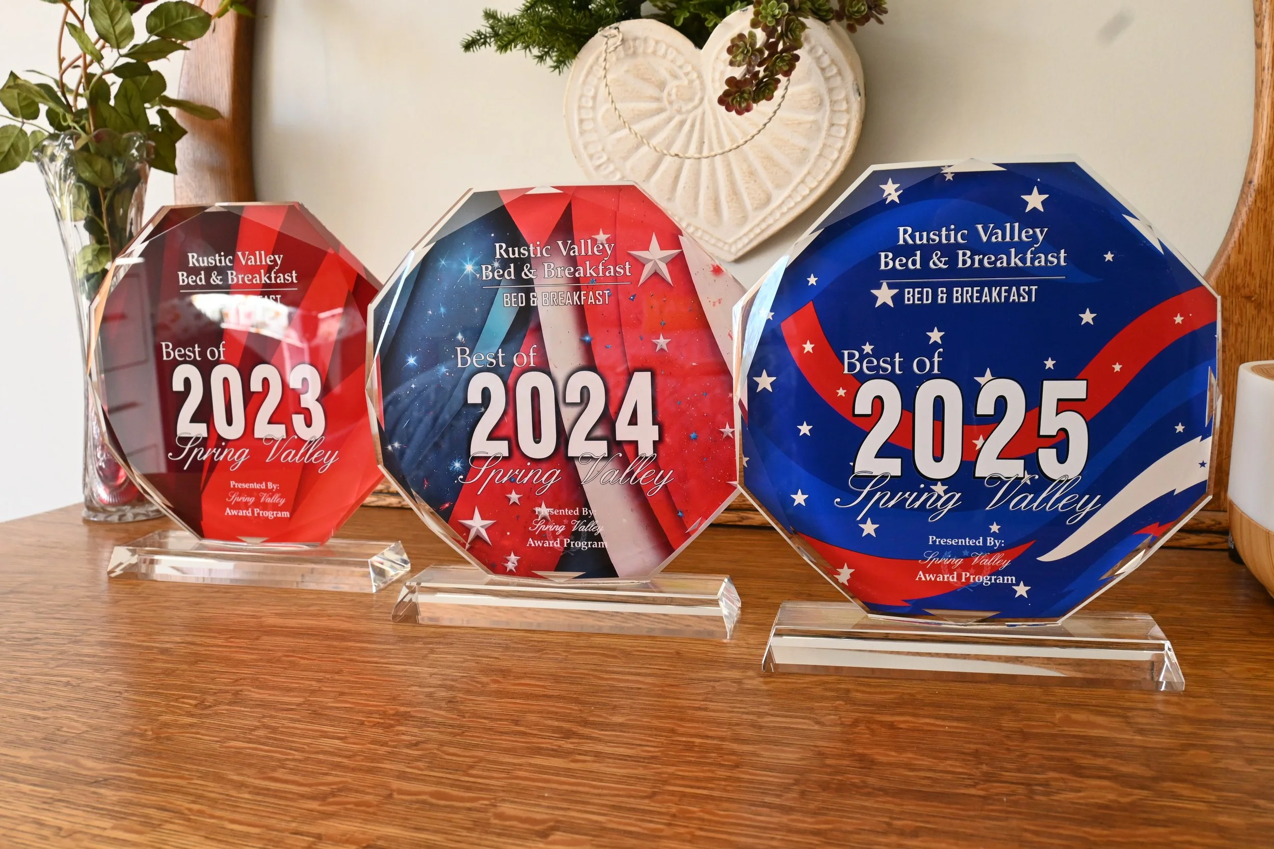 We are really proud to be named Best of Spring Valley Bed & Breakfast three years in a row. What started for us when we wanted to open our home up to interesting travelers, to share what God had given us, has bloomed into something fantastic.